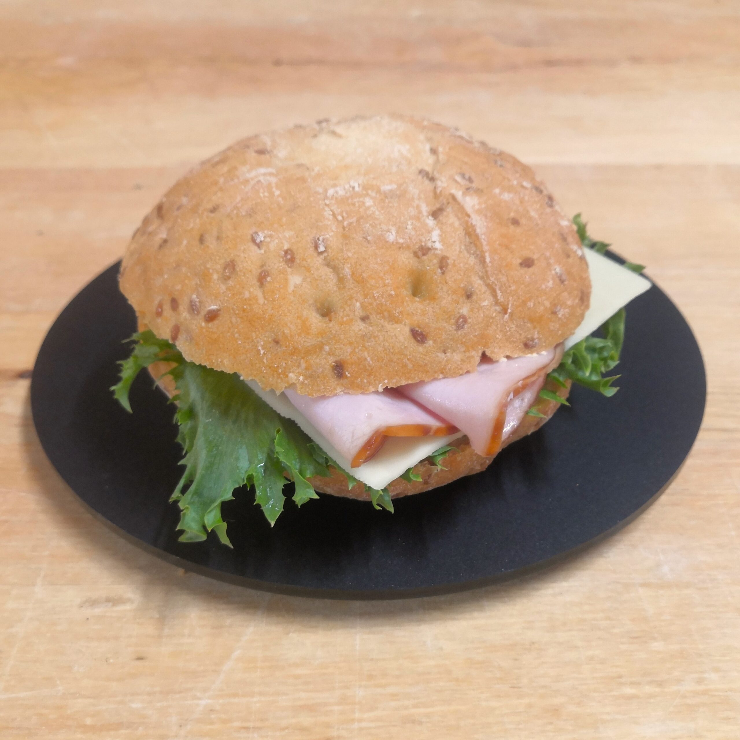 Gluteeniton täytetty sämpylä kinkku-juusto