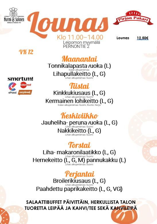 Lounas vko 12 Leipomon myymälä, Pernontie 2