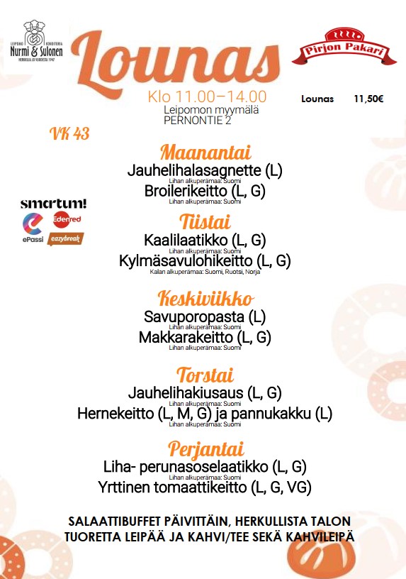 Lounas vko 43 Leipomon myymälä, Pernontie 2