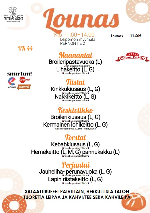 Lounas vko 44 Leipomon myymälä, Pernontie 2