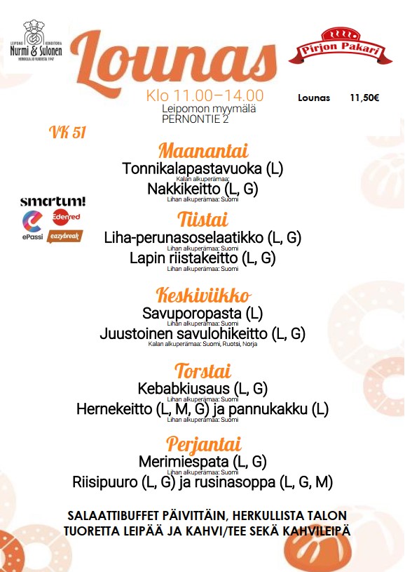Lounas vko 51 Leipomon myymälä, Pernontie 2